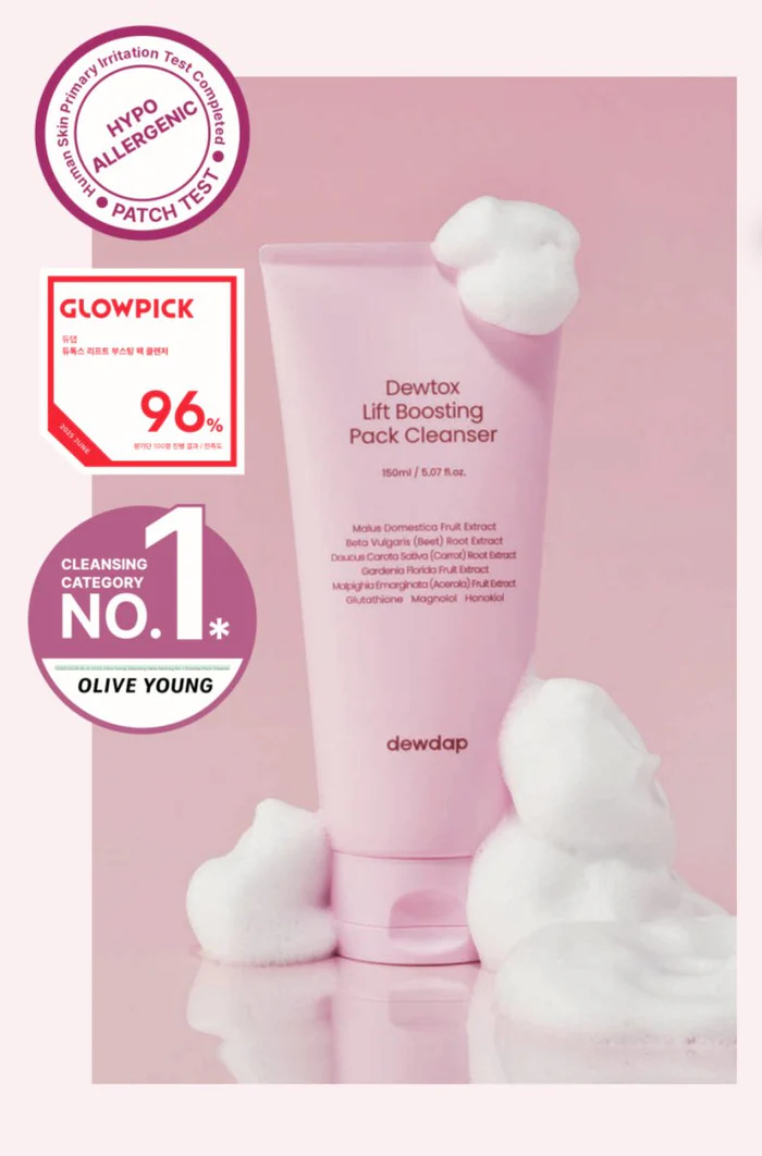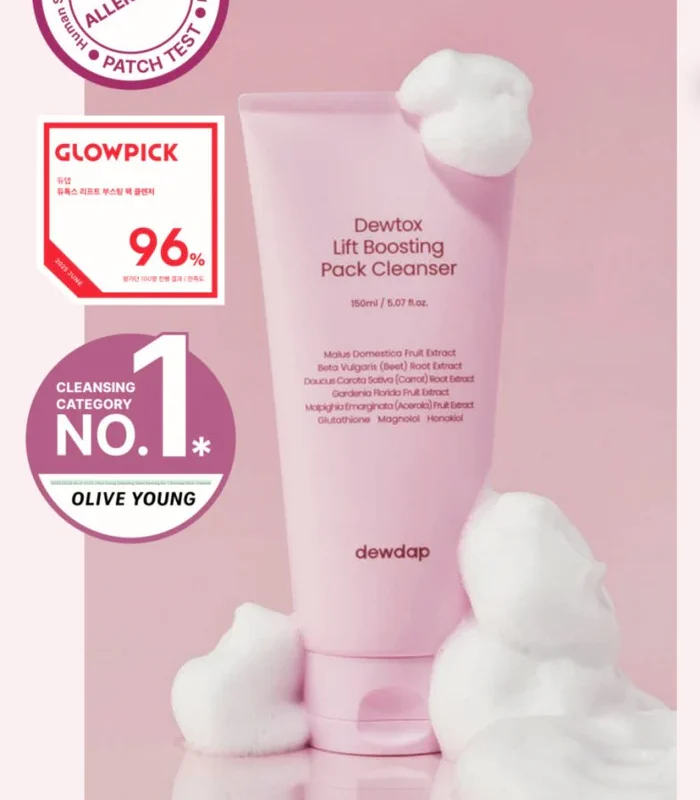 DEWDAP Dewtox Lift Boosting Pack Cleanser yra revitalizuojantis veido valiklis, kuris švelniai pašalina nešvarumus, riebalų perteklių ir kasdienį odos nuovargį. Formulė praturtinta detoksikuojančiais ir odą kondicionuojančiais ingredientais, kurie valo, palaiko odos elastingumą ir lygumą. Reguliariai naudojant, oda lieka gaivi, švari ir atgaivinta.
