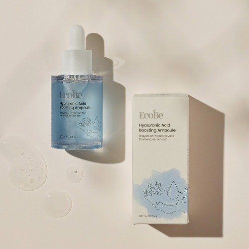 EcoBe Hyaluronic Acid Boosting Ampoule drėkinanti ampulė su hialurono rūgštimi, 30 ml. Tai intensyviai drėkinanti ampulė. Ji skirta atkurti odos drėgmės balansą. Formulė lengva, bet koncentruota. Greitai įsigeria į odą. Hialurono rūgštis pritraukia drėgmę. Ji padeda išlaikyti ją odoje. Oda tampa putli ir švelni. Drėkinantys ingredientai palaiko ilgalaikį komfortą. Jie apsaugo nuo sausumo. Odą minkštinantys komponentai lygina tekstūrą. Jie suteikia glotnumo pojūtį. Barjerą stiprinantys ingredientai padeda išlaikyti sveiką odos būklę. Oda atrodo gaivi, sudrėkinta ir gyvybinga.